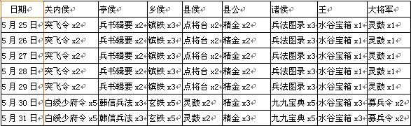 *该活动各奖项向下兼容,例如玩家的爵位是王,则可以在活动期间领取王和王以下所有级别爵位的军饷