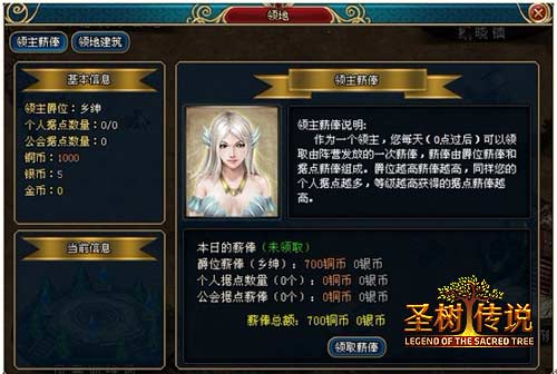 游戏一开始玩家就已经是一位领主了,每位领主都有各自爵位,玩家初始的爵位是乡绅,根据玩家的等级提升,爵位也会随之提升。在领主界面当中,玩家可以看到自己当前爵位,还可以看到自己目前拥有的据点数量和公会据点薪俸。领主每天都可以领取一笔属于自己的薪俸,薪俸的多少取决于玩家的爵位和据点数量,玩家爵位的提升和占有更多的据点,就可以领取到更多的薪俸哦!