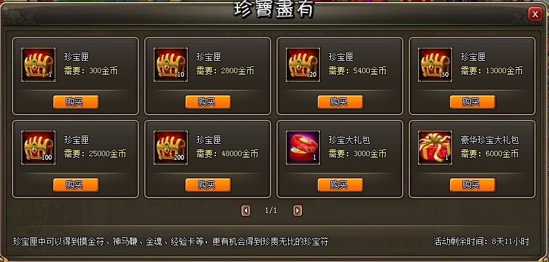 活动内容:活动期间可购买珍宝匣获得大量珍贵道具。