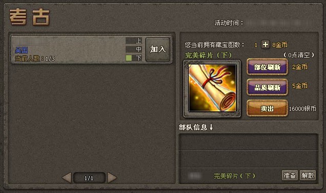 5、玩家可用金币刷新自己的藏宝图品质和碎片种类,也可以卖出自己的藏宝图。
