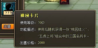 使用神秘锦囊或者缤纷锦囊,分别可以获得“神秘卡片”和“缤纷卡片”。使用神秘卡片后可随机获得一张“桃园结义”、“五虎上将”组合中的三国名将卡。