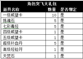 角色突飞大礼包:限时抢购价格9元宝