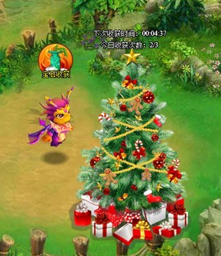 3. 当点亮了所有装饰后,圣诞树会进入收获时期,每1小时可以收获3个圣诞树礼包,一共可以收获3次,并在第二天00:00重置
