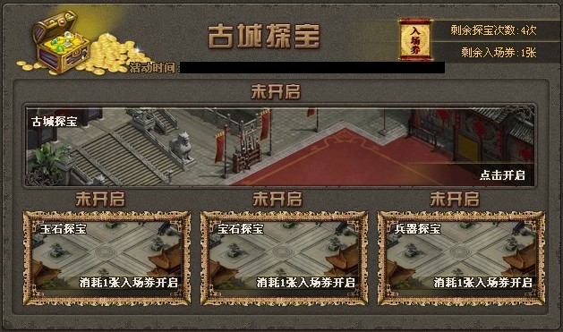 3、活动第二天开启超级探宝,分别有玉石、宝石、兵器三种类型,可凭入场券进入