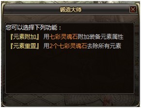 1. 与春之城锻造大师(67,38)对话,选择元素附加功能