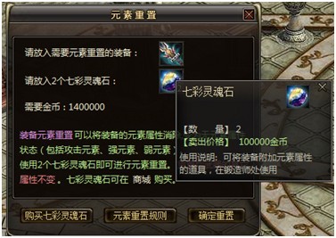 每次重置需要使用2个七彩灵魂石与一定的金币