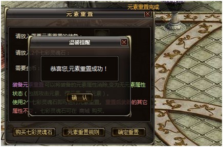 装备元素重置可以将装备的元素属性消除,变为无元素属性状态(包括攻击元素、强元素、弱元素)装备的其他极品属性均不受影响。