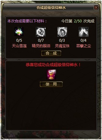 玩家每天可以使用“天山雪莲”制作“超级信仰神水”。