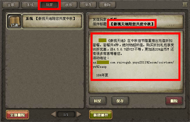 请大家点击系统、玩家来区分邮件: