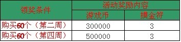 【活动时间】:开服第二周和第四周 (注意:第二周与第四周奖励额度不同)