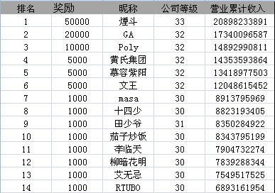 区服 名次 昵称 奖励