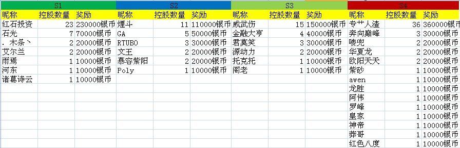团体奖获得的是S5 具体数值分别为:
