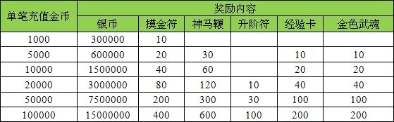 3. 活动内容:活动时间内,玩家单笔充值达到一定额度时可领取对应的充值礼包。