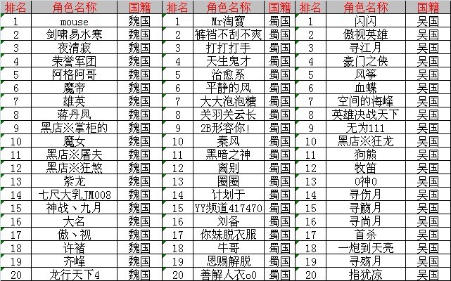 【名单】双线111区“群雄再起,号令天下”威望